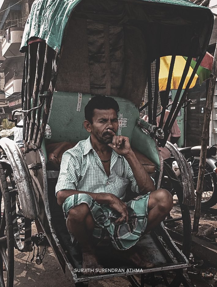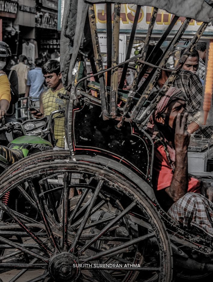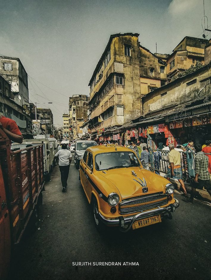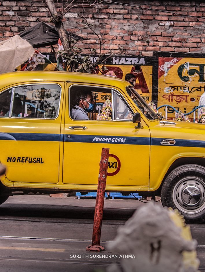 കൊൽക്കത്ത നഗരത്തിന്റെ ക്ലാസ്സിക് മുഖമുദ്രകൾ. എൺപത് കാലഘട്ടങ്ങളിൽ കൊൽക്കത്ത നഗരത്തിലൂടെ നിറഞ്ഞോടിയിരുന്ന, എന്നാൽ ഹിന്ദുസ്ഥാൻ മോട്ടോർസ് കമ്പനി പൂട്ടിപ്പോയതിനാൽ ‘വംശനാശം’ നേരിട്ടുകൊണ്ടിരിക്കുന്ന മഞ്ഞ അമ്പാസിഡർ ടാക്സിക്കാറുകൾ. എവിടെ തിരിഞ്ഞു നോക്കിയാലും കാണാം എന്നതുകൊണ്ട് തന്നെ കൊൽക്കത്ത നഗരത്തിന്റെ രക്ത കുഴലുകൾ എന്നാണ് ഇവരണ്ടും അറിയപ്പെടുന്നത്. കൂടുതലും പ്രായമായ ആളുകളാണ് റിക്ഷ വലിക്കുന്നത്. വളരെ തുച്ഛമായ കൂലി മാത്രം വാങ്ങിച്ച് അവരാ നഗരത്തിന്റെ മുക്കിലും മൂലയിലൂടെയും നിർത്താതെയുള്ള ഓട്ടമാണ്.